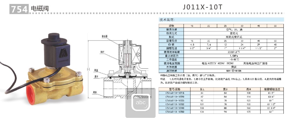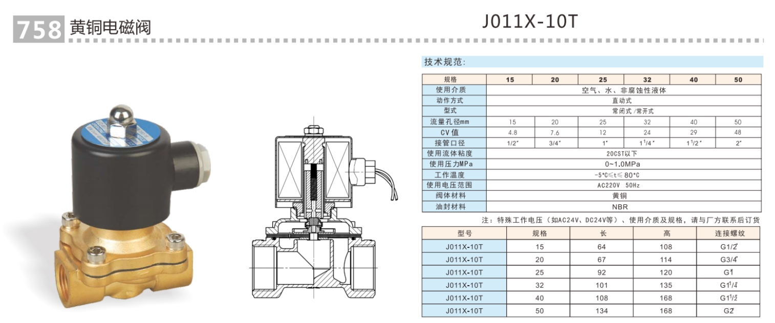 埃美柯(ke)758黃銅電(dian)磁閥技術參數: